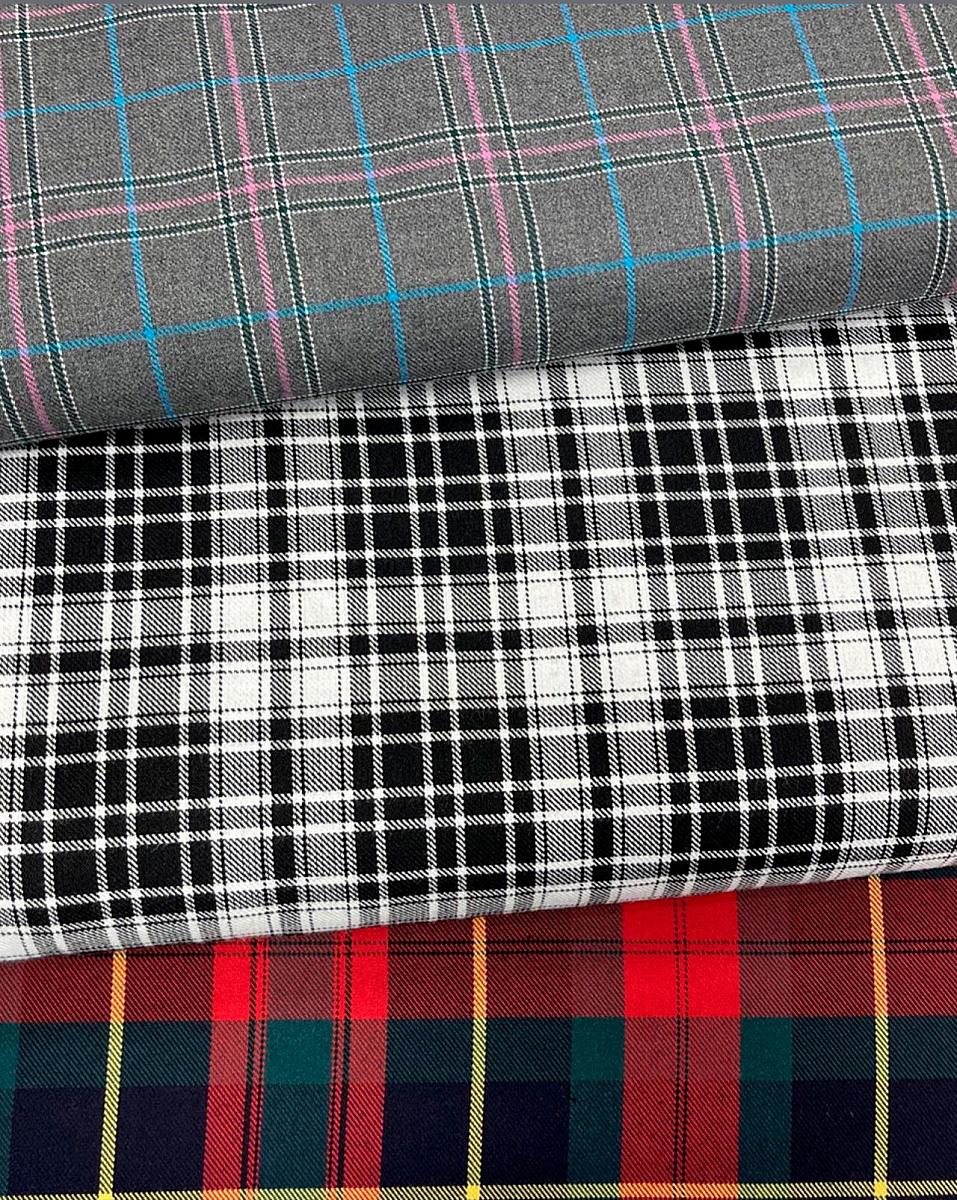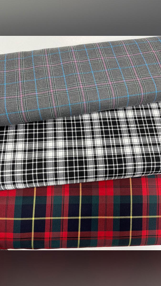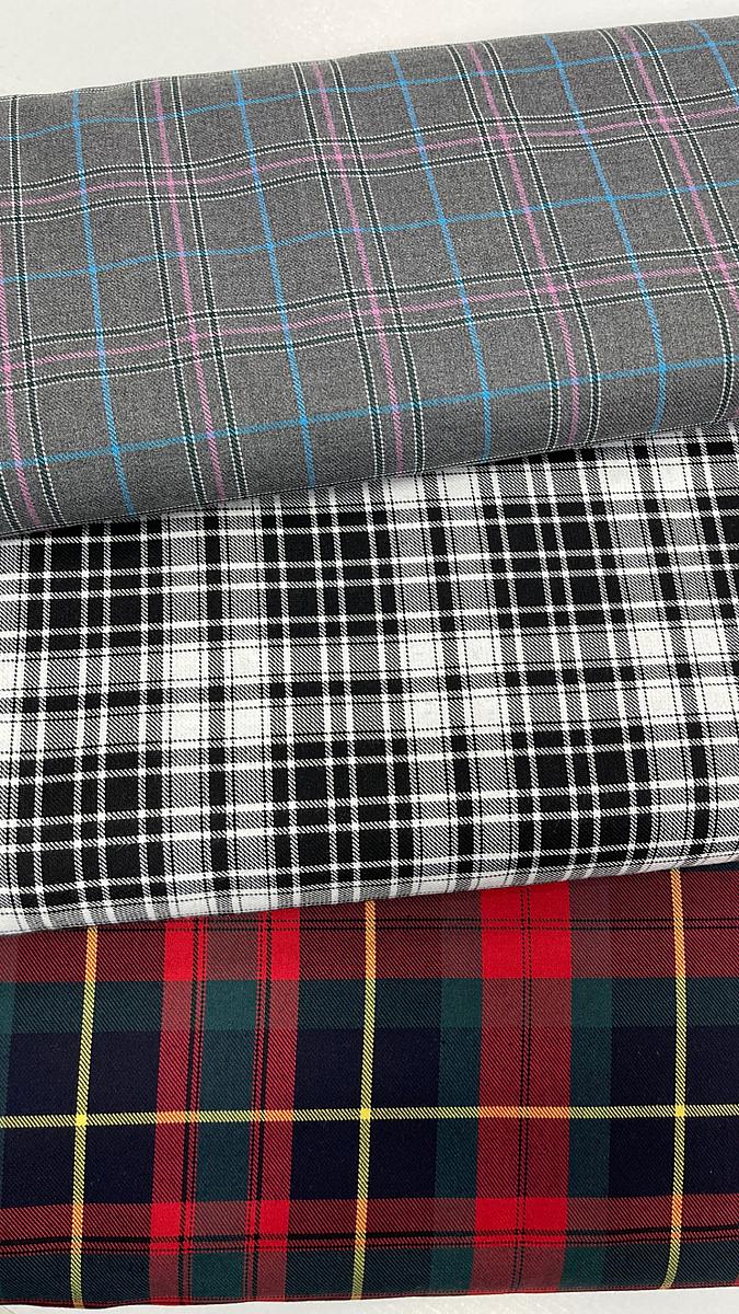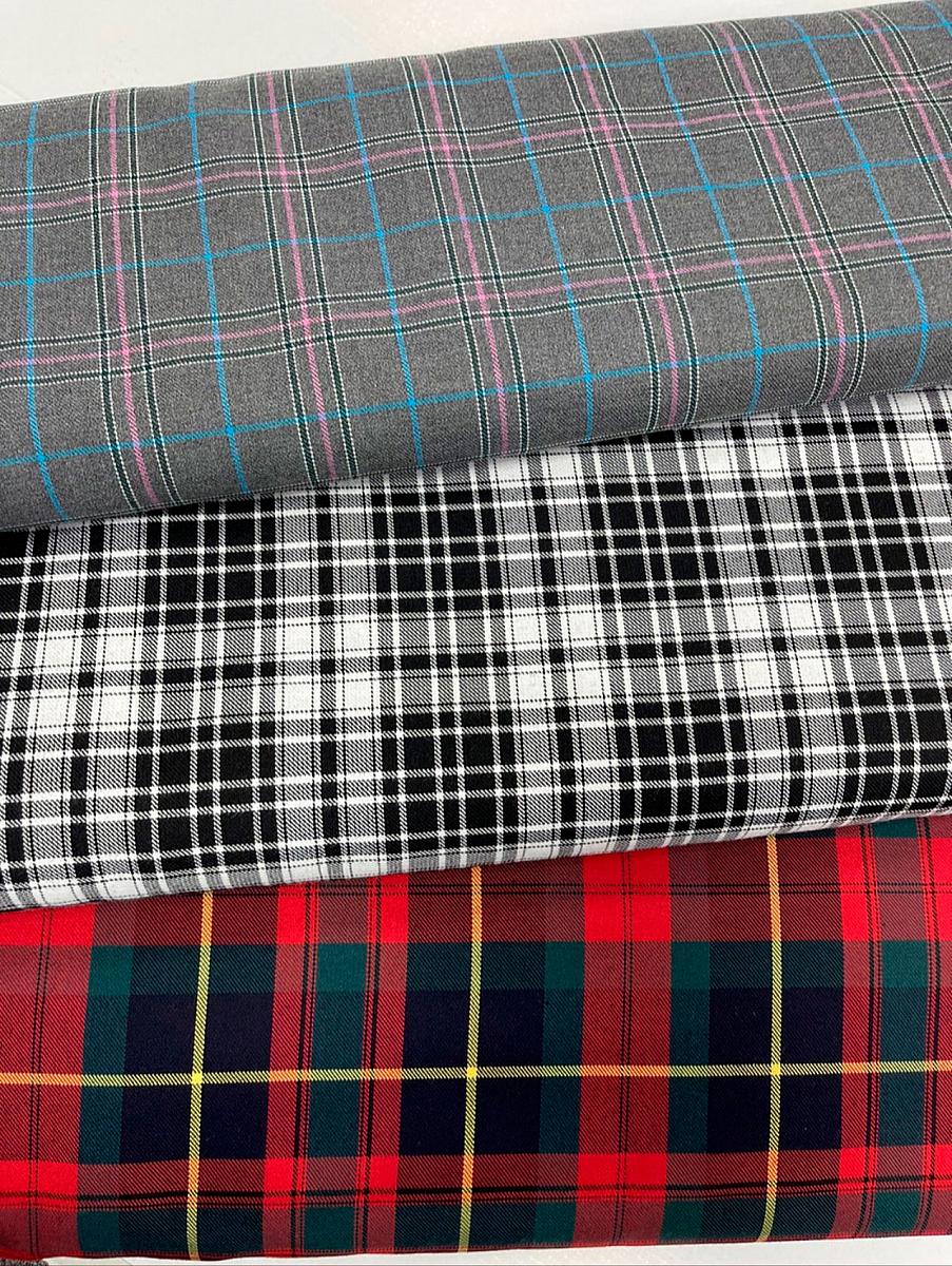 Ткань костюмная серый фон клетка розово-бирюзовая