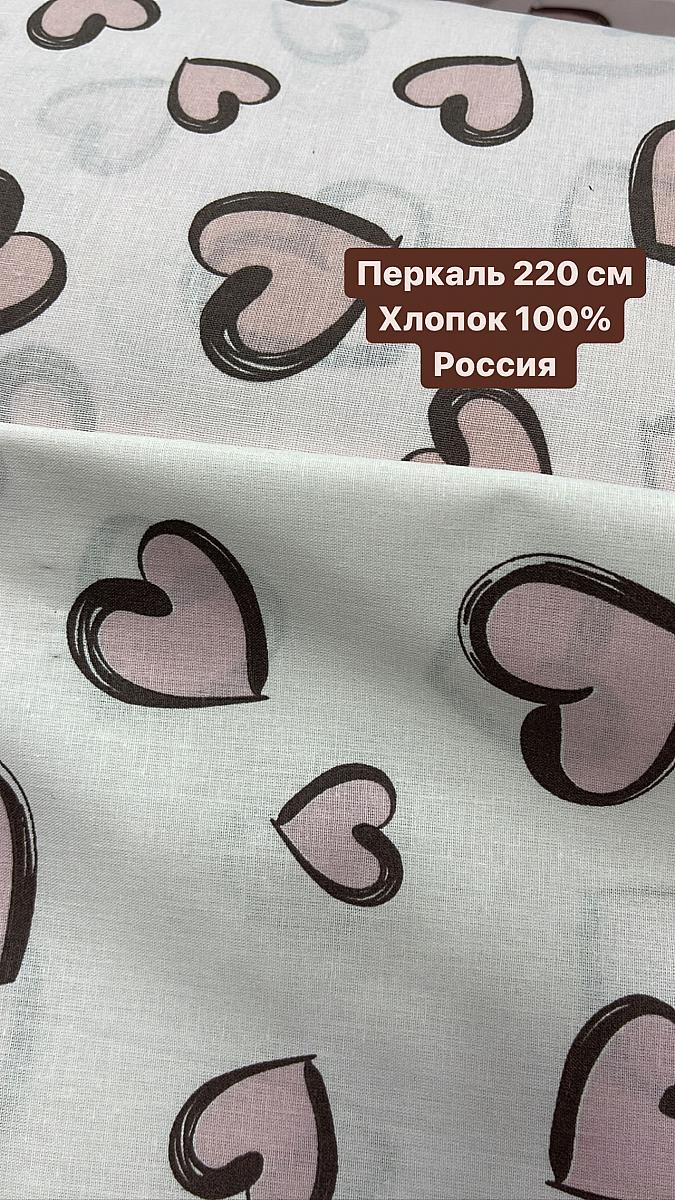 Перкаль Тейковский ХБК затаив дыхание роз ф серд роз с коричн контуром 20659-4