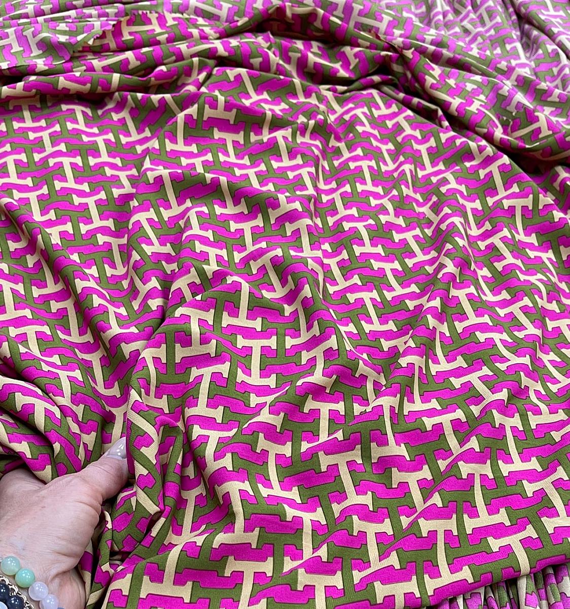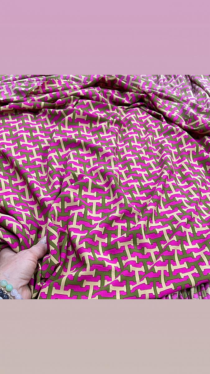 Пикассо стрейч ярко розовый фон н бежево-болотная
