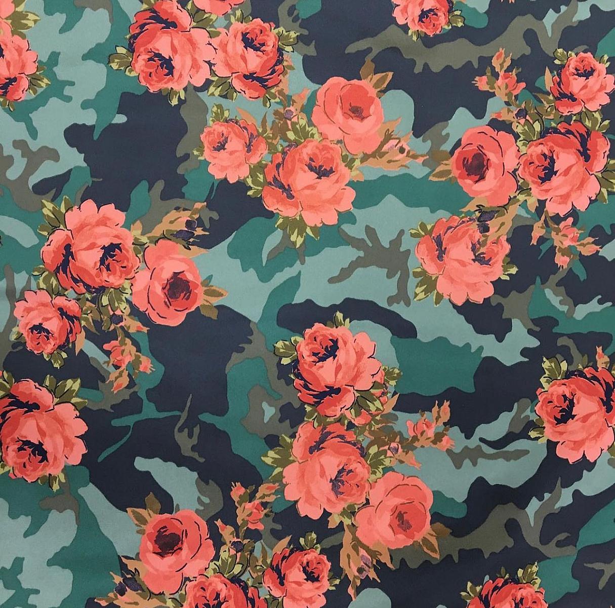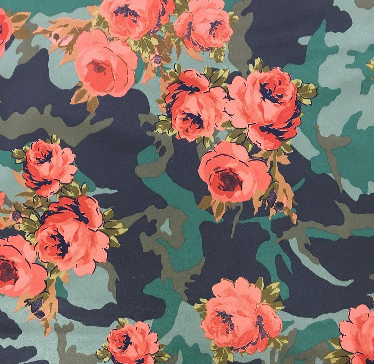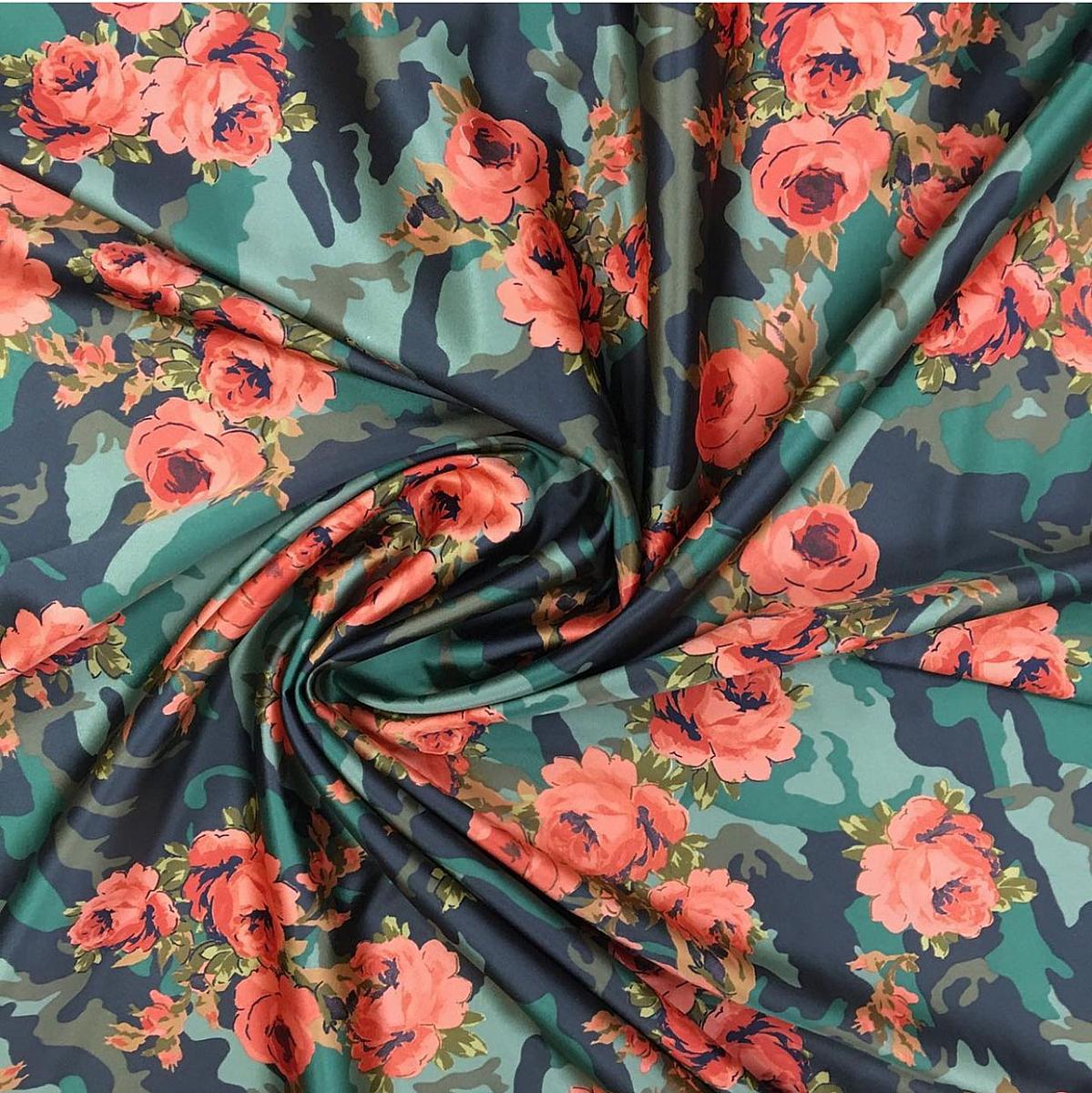 Атлас-стрейч фон милитари болитров-кор. розы