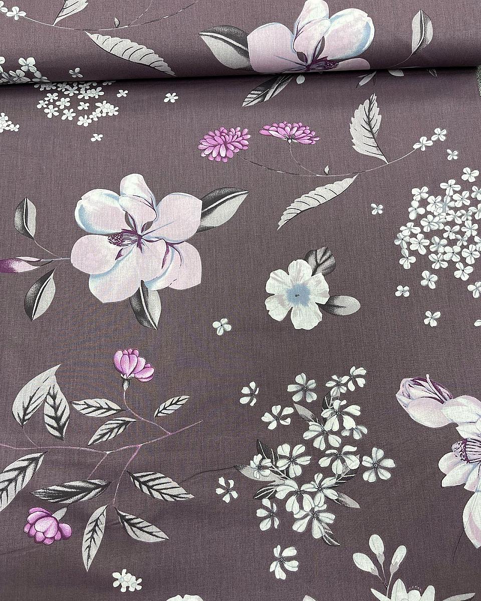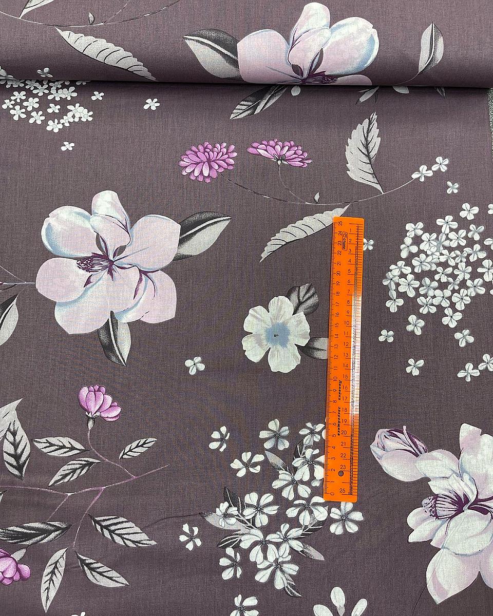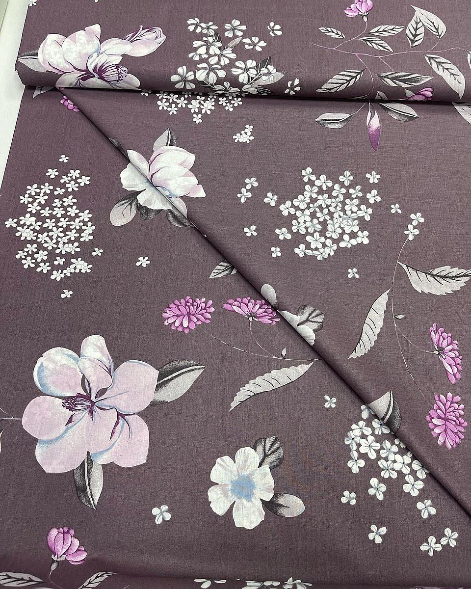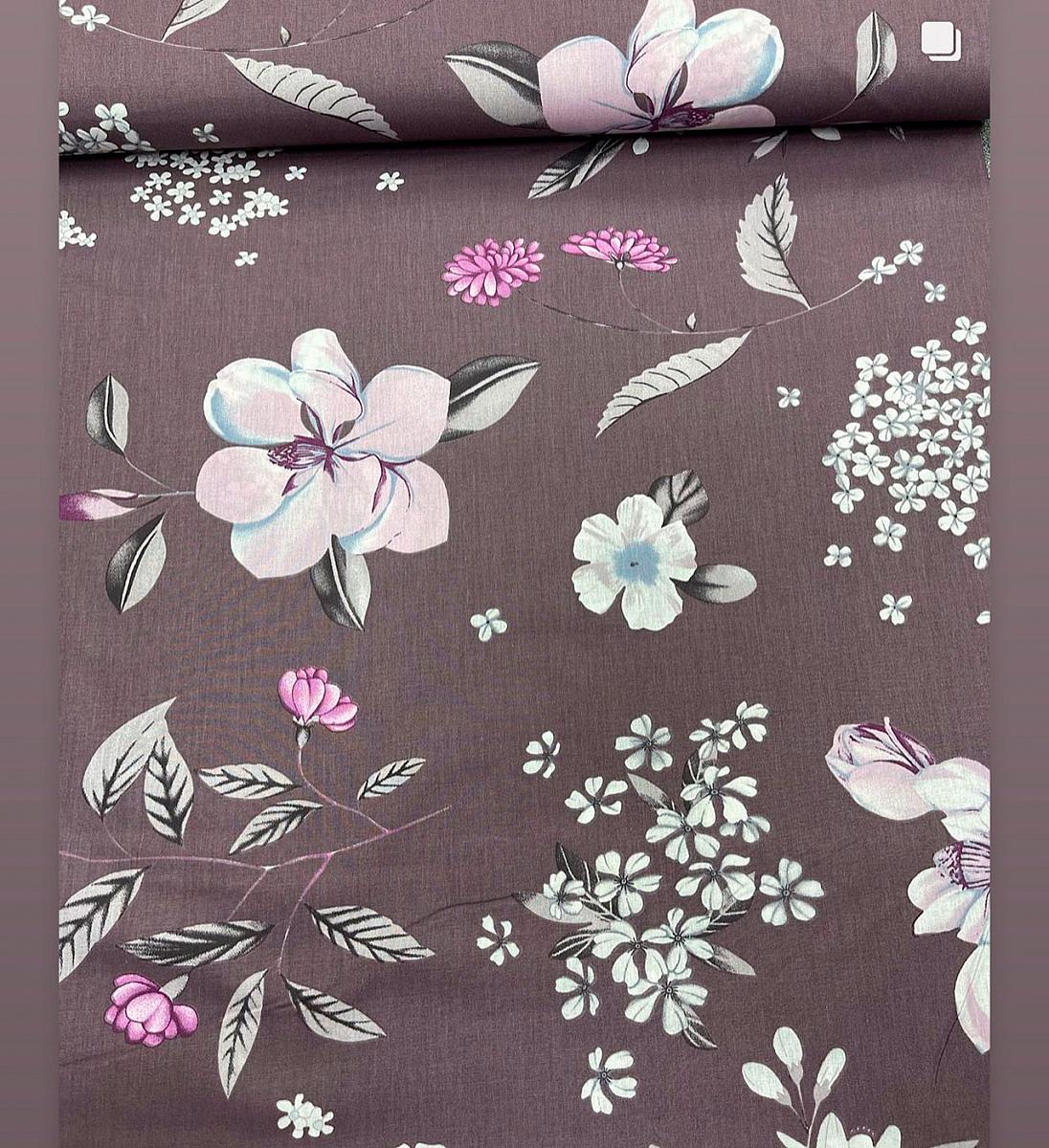 Ранфорс lux розовый фон магнолии , хризантемы фуксия