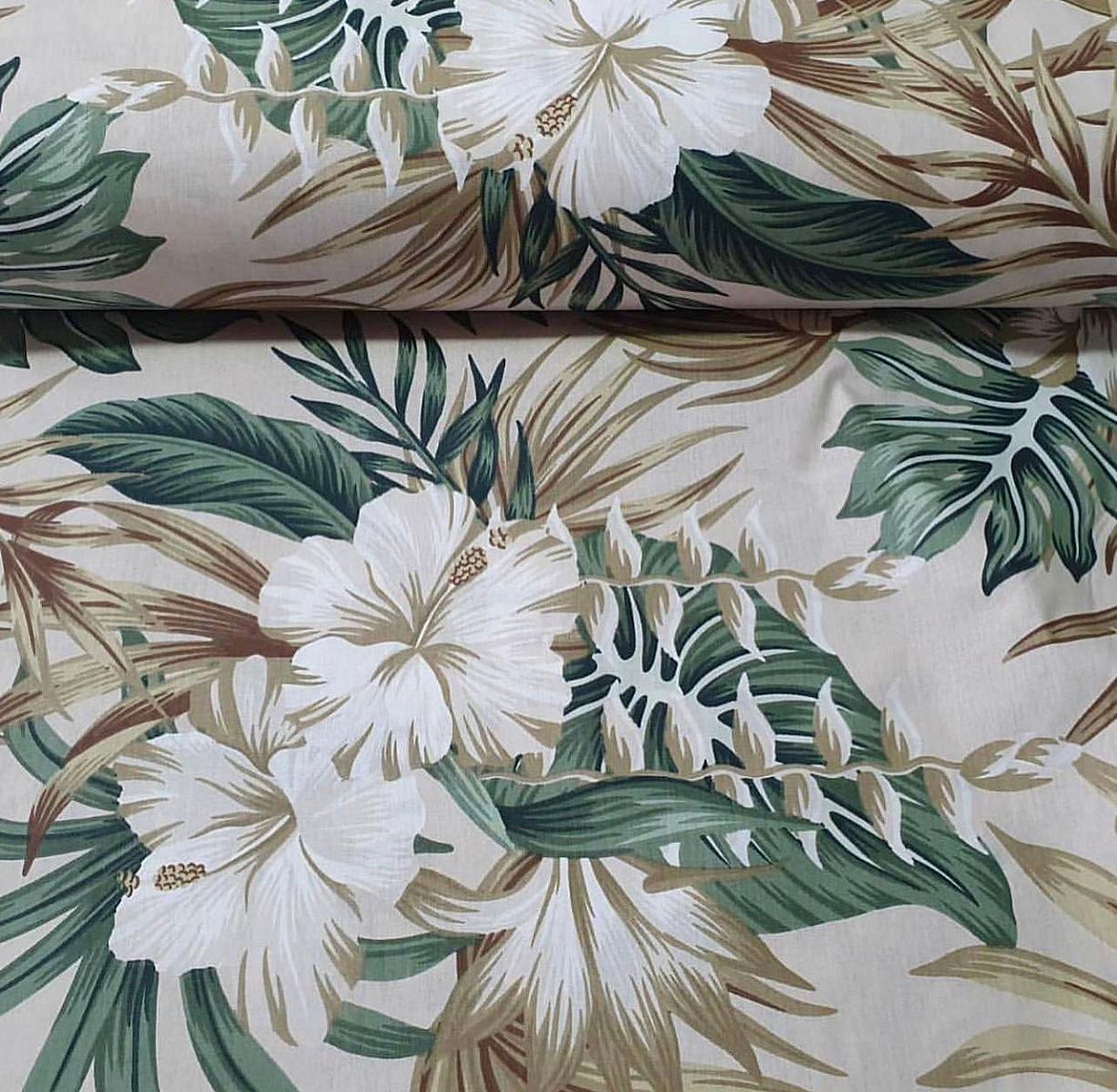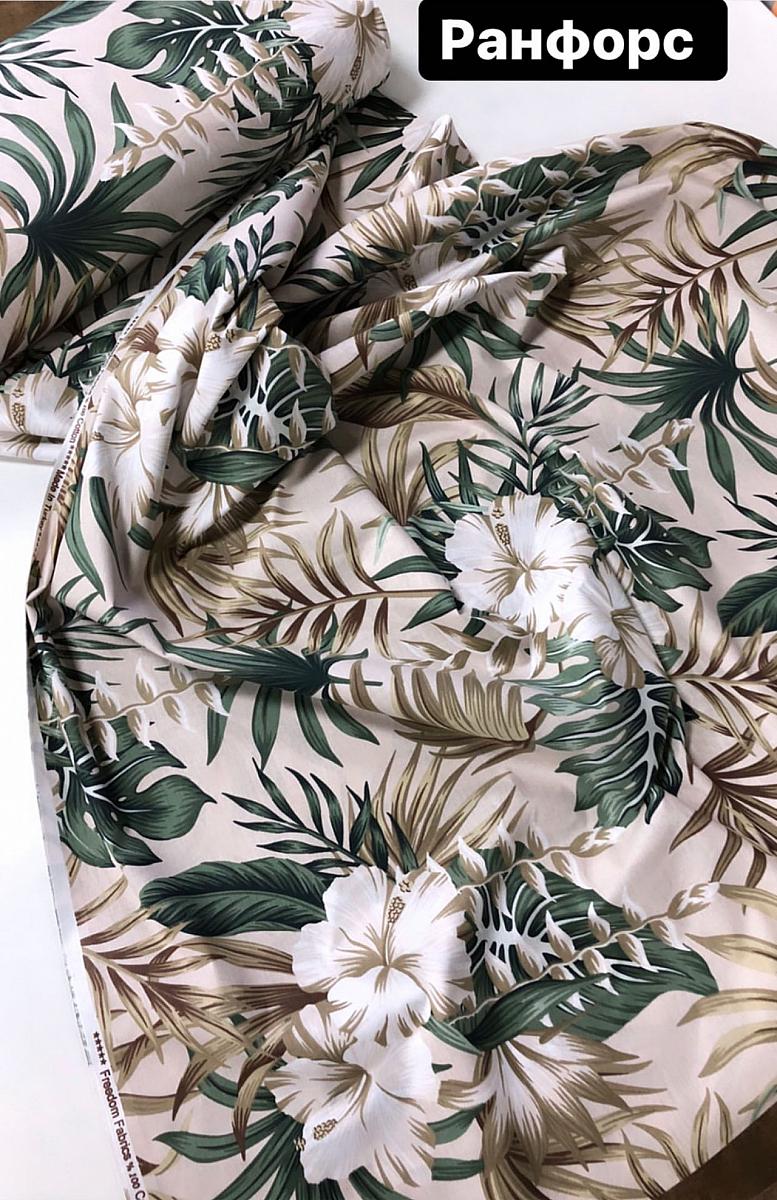 Ранфорс lux бежевый фон растительный рисунок листья монстеры