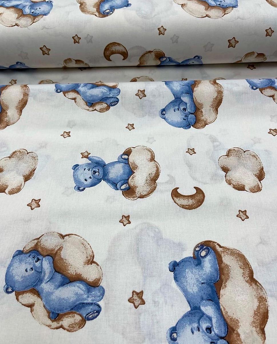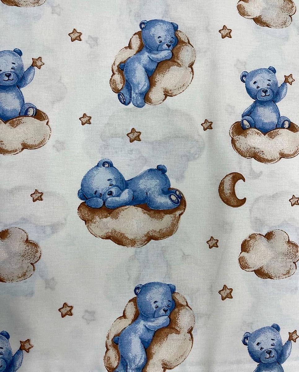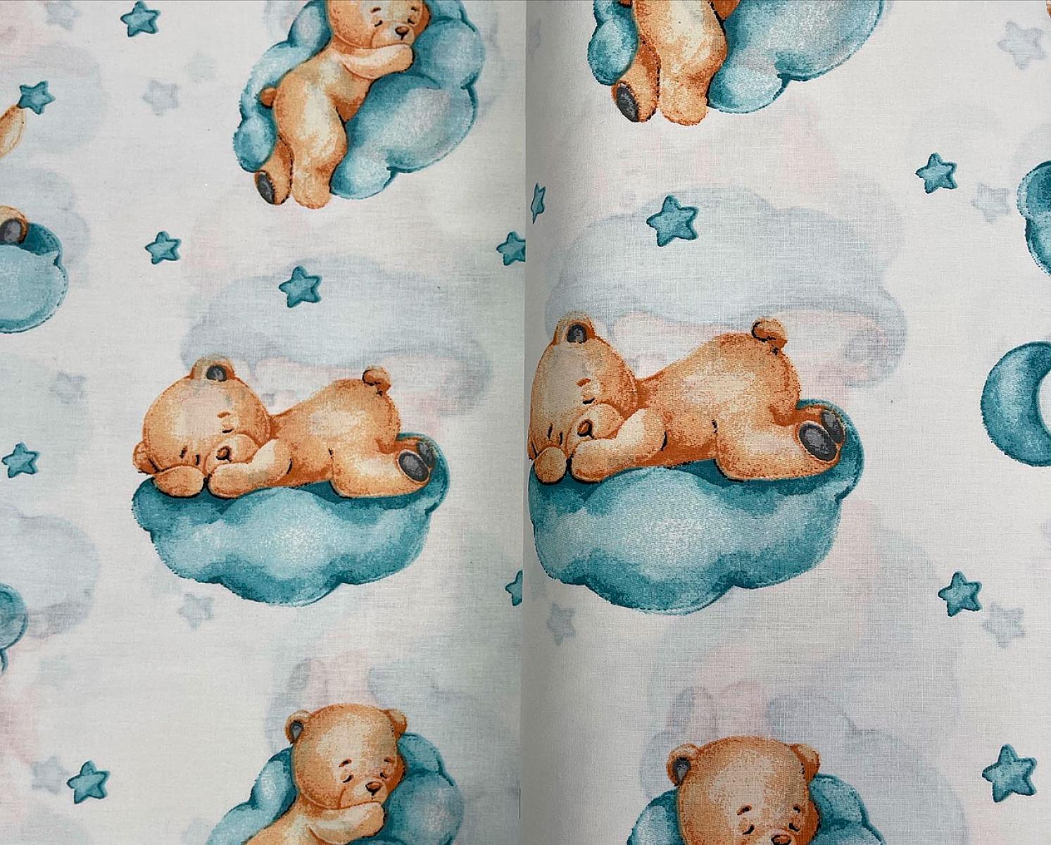 Ранфорс lux белый фон коричневые мишки на бирюзовых облаках