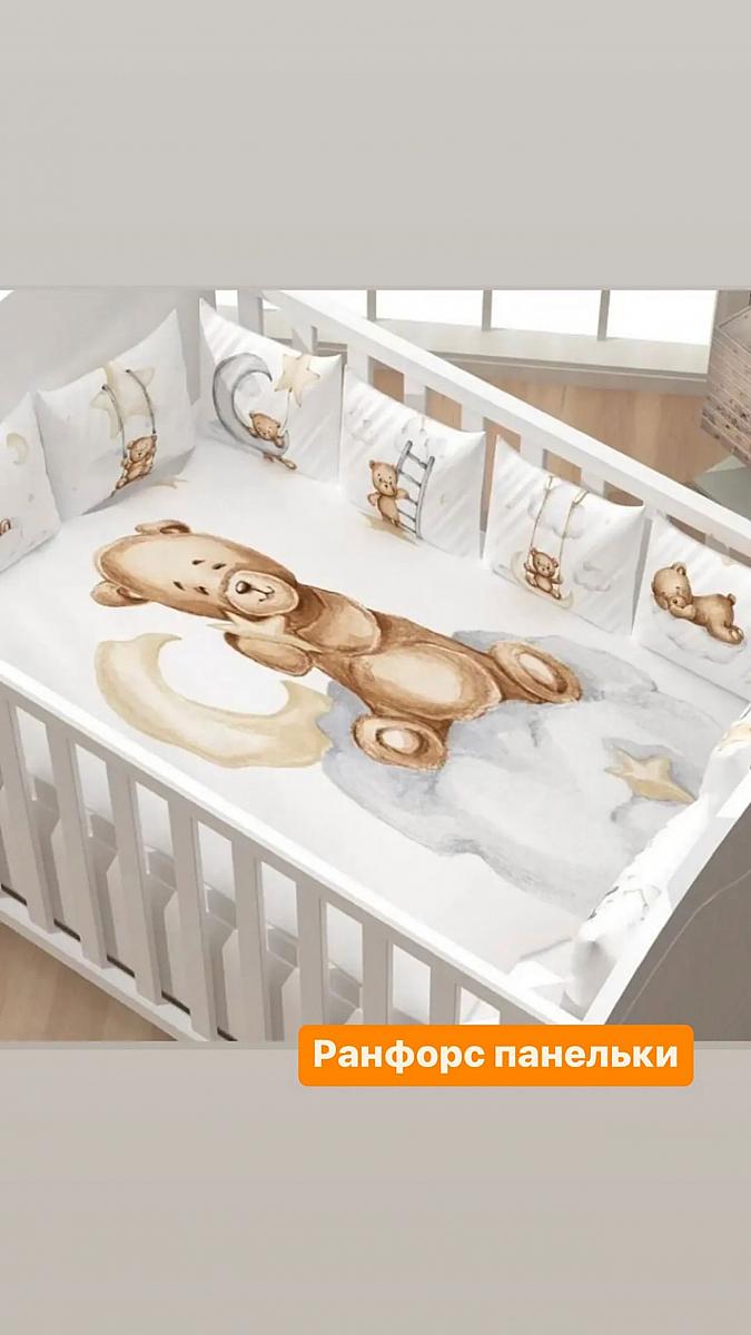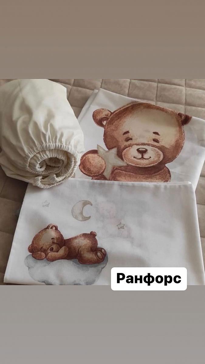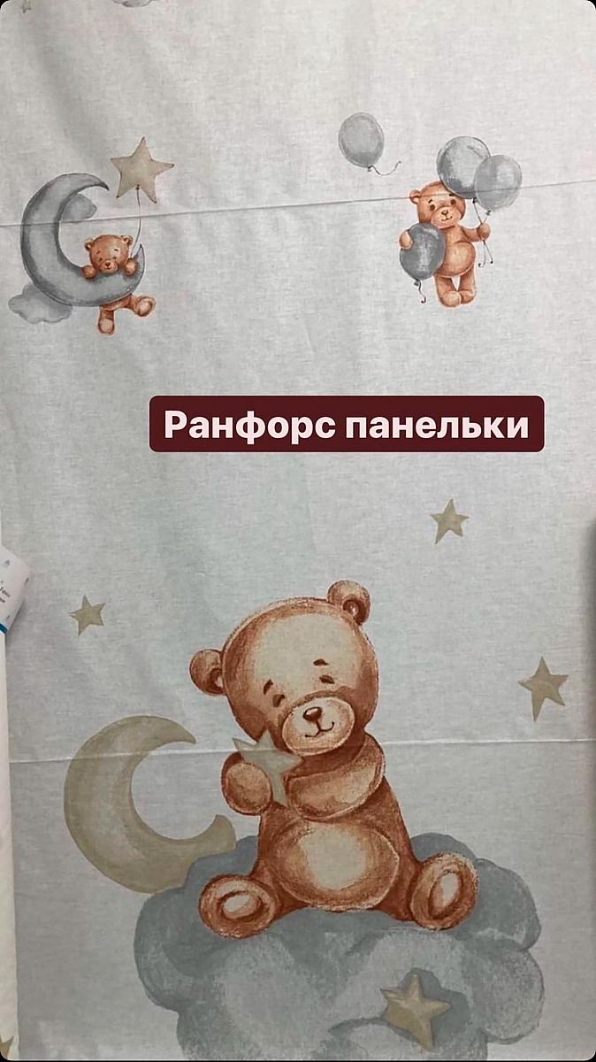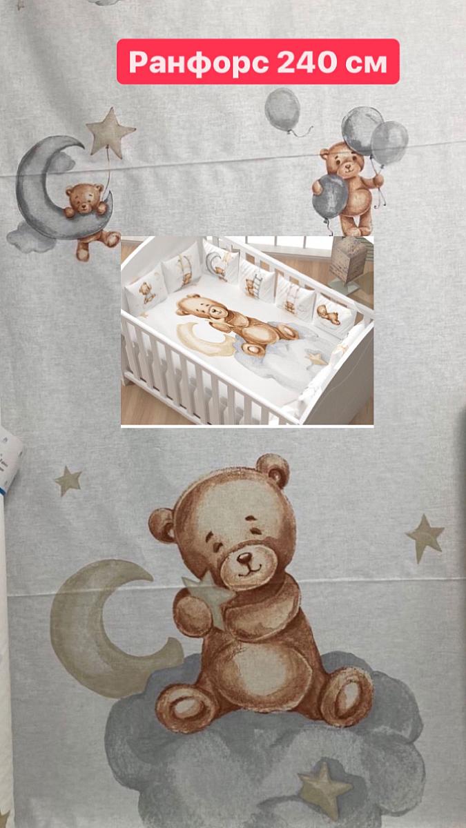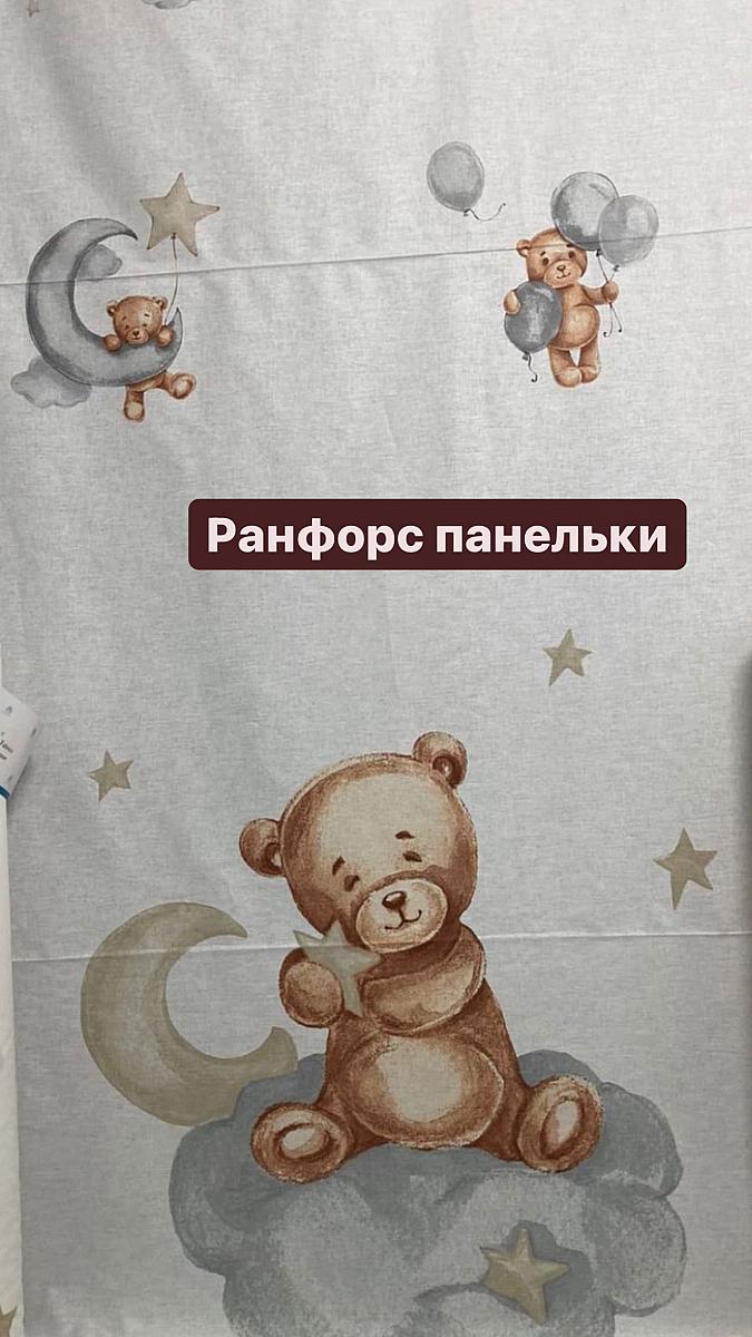 Ранфорс lux панельки белый фон мишки бежевые на серых облаках