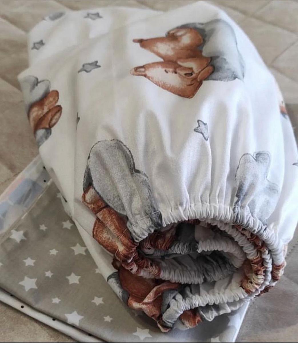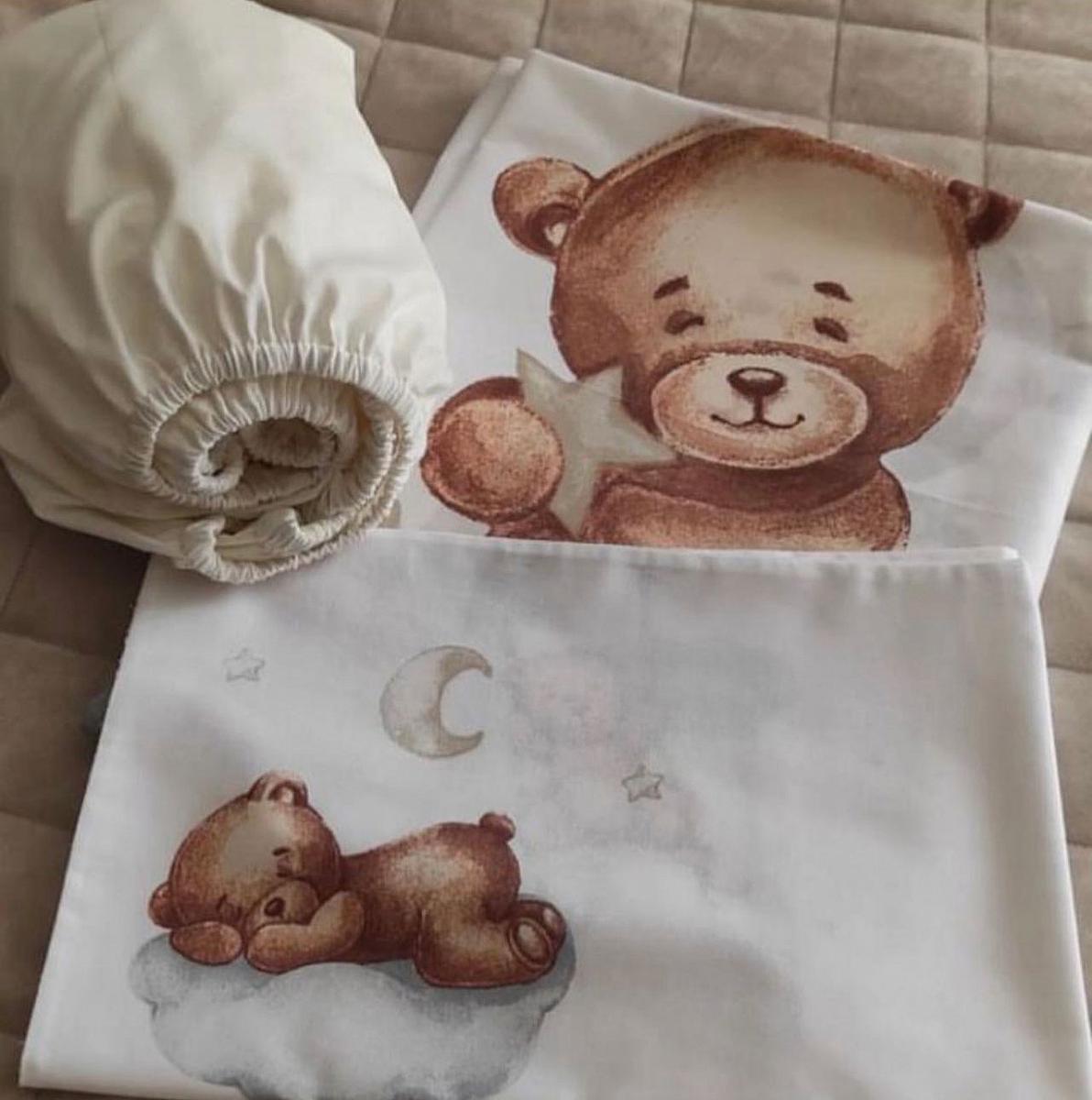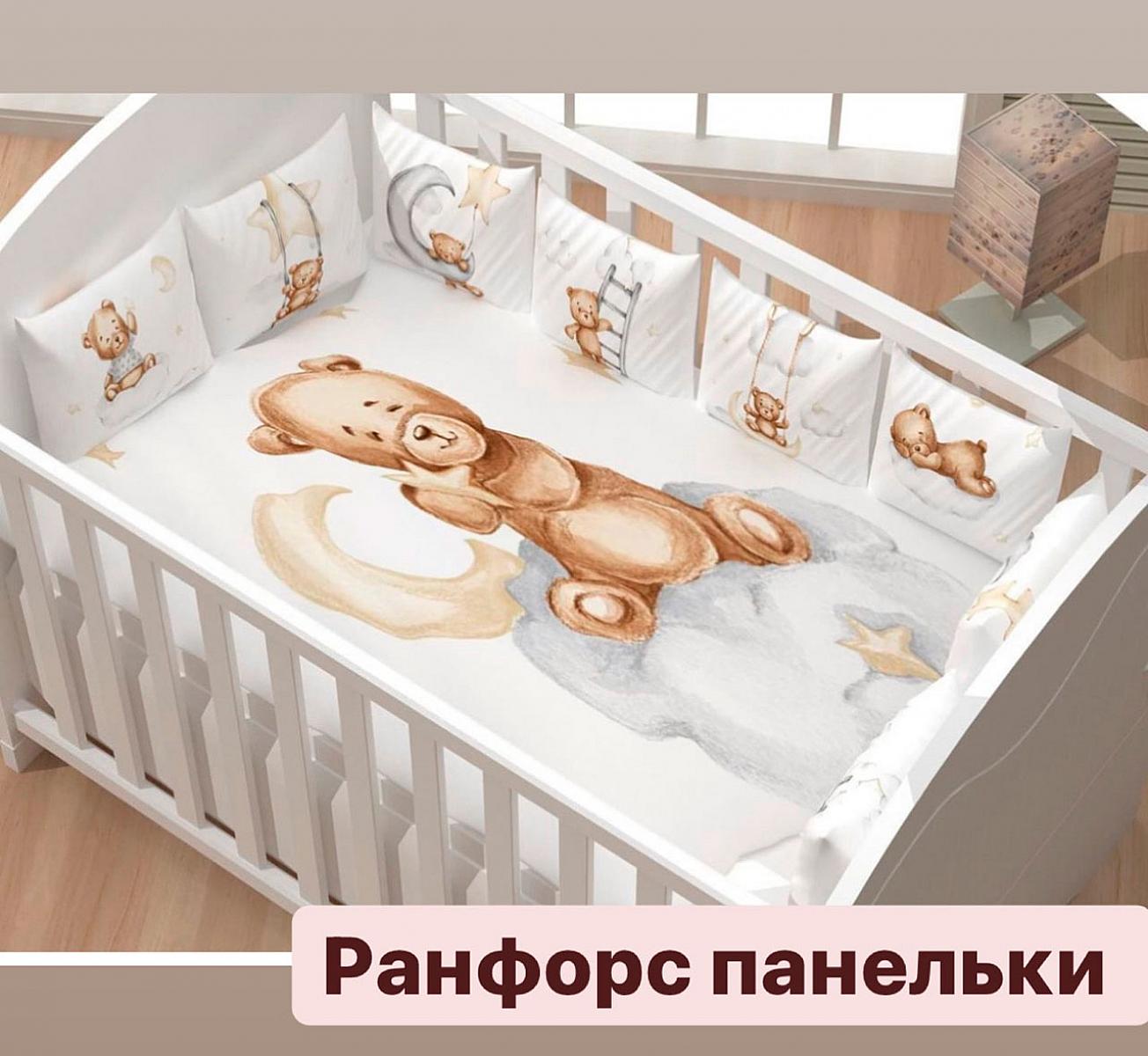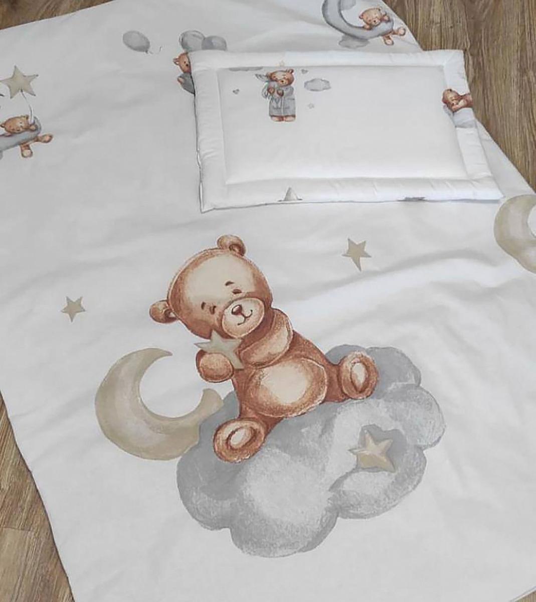 Ранфорс lux панельки белый фон мишки бежевые на серых облаках