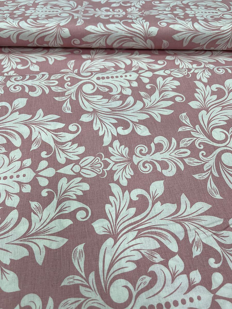 Ранфорс lux персиково-розовый фон вензеля пудровые