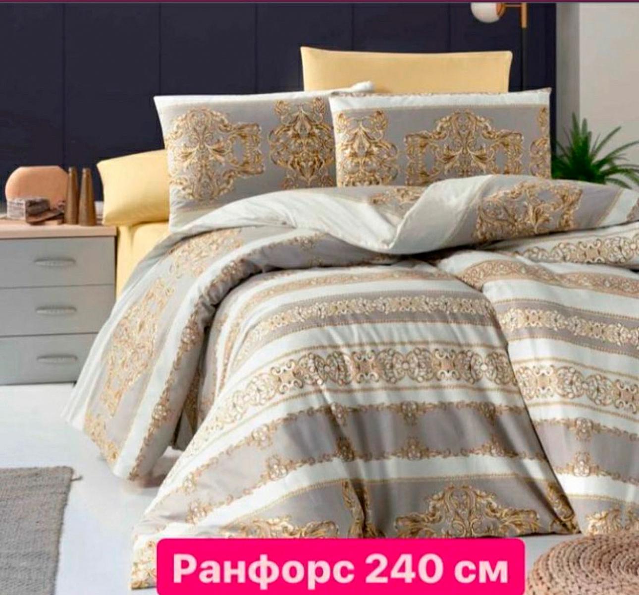 Ранфорс lux кофейный фон вензеля золотисто-бежевые