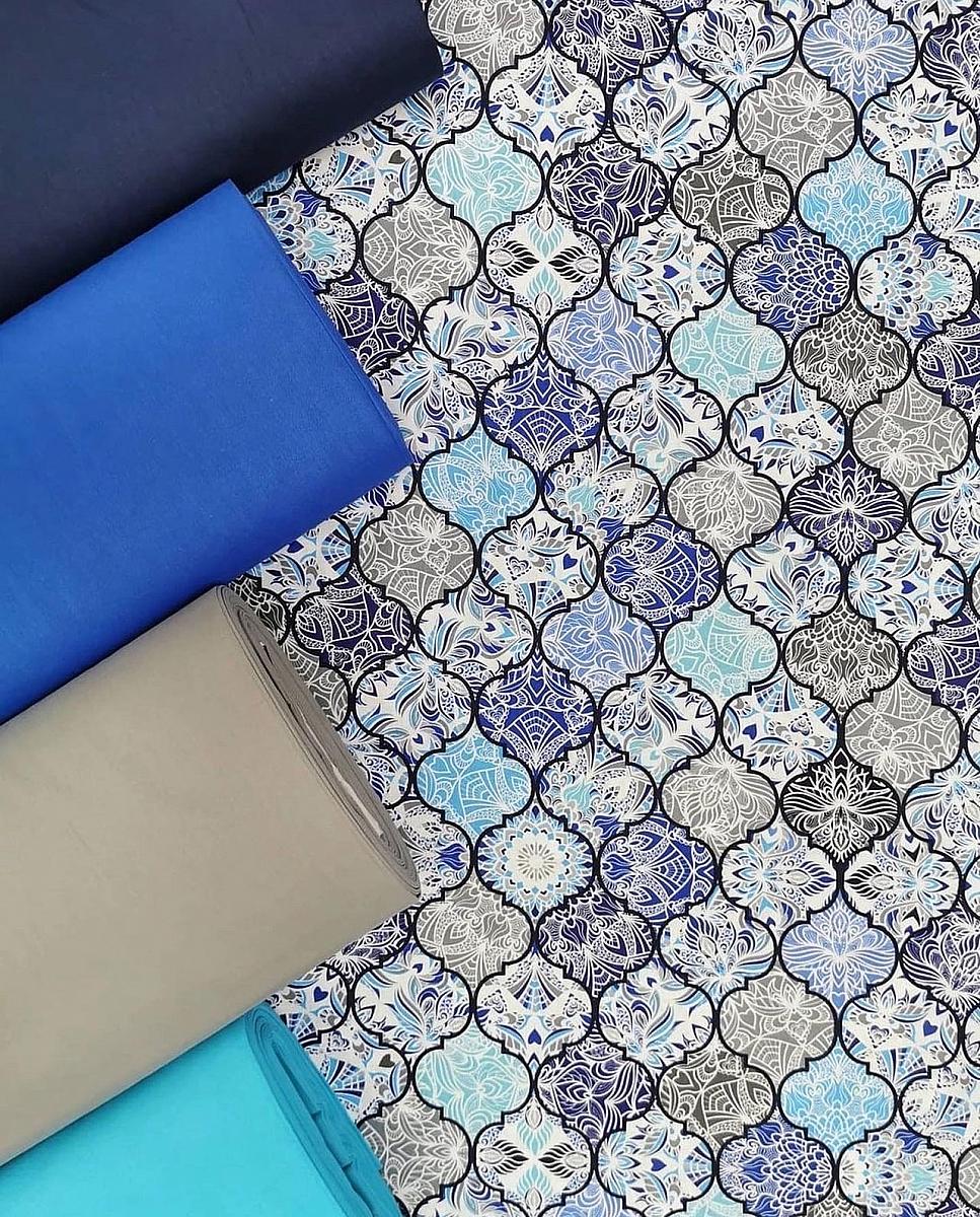 Ранфорс lux мозаика сине-серый-бирюзовый