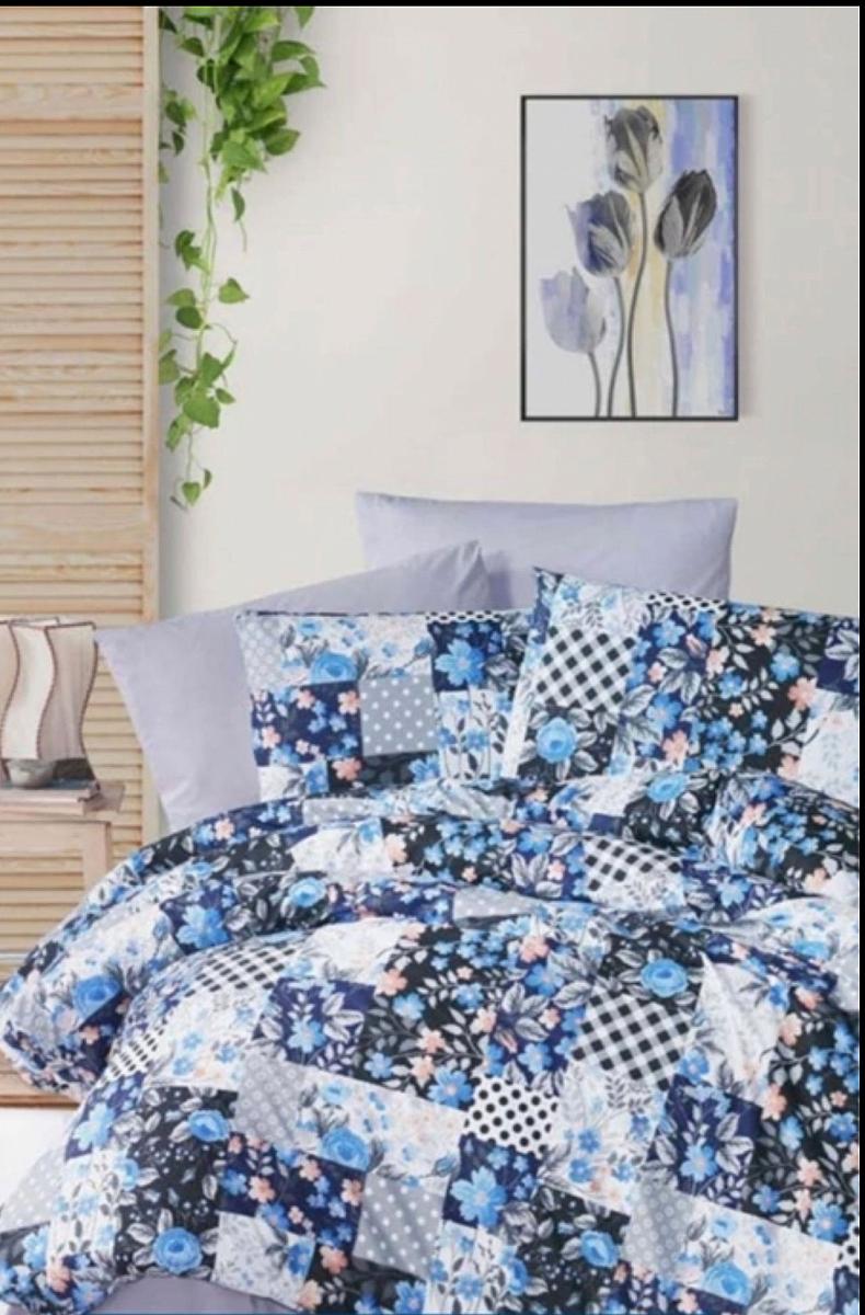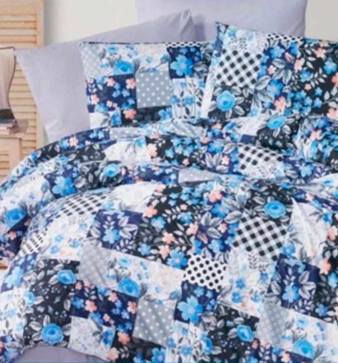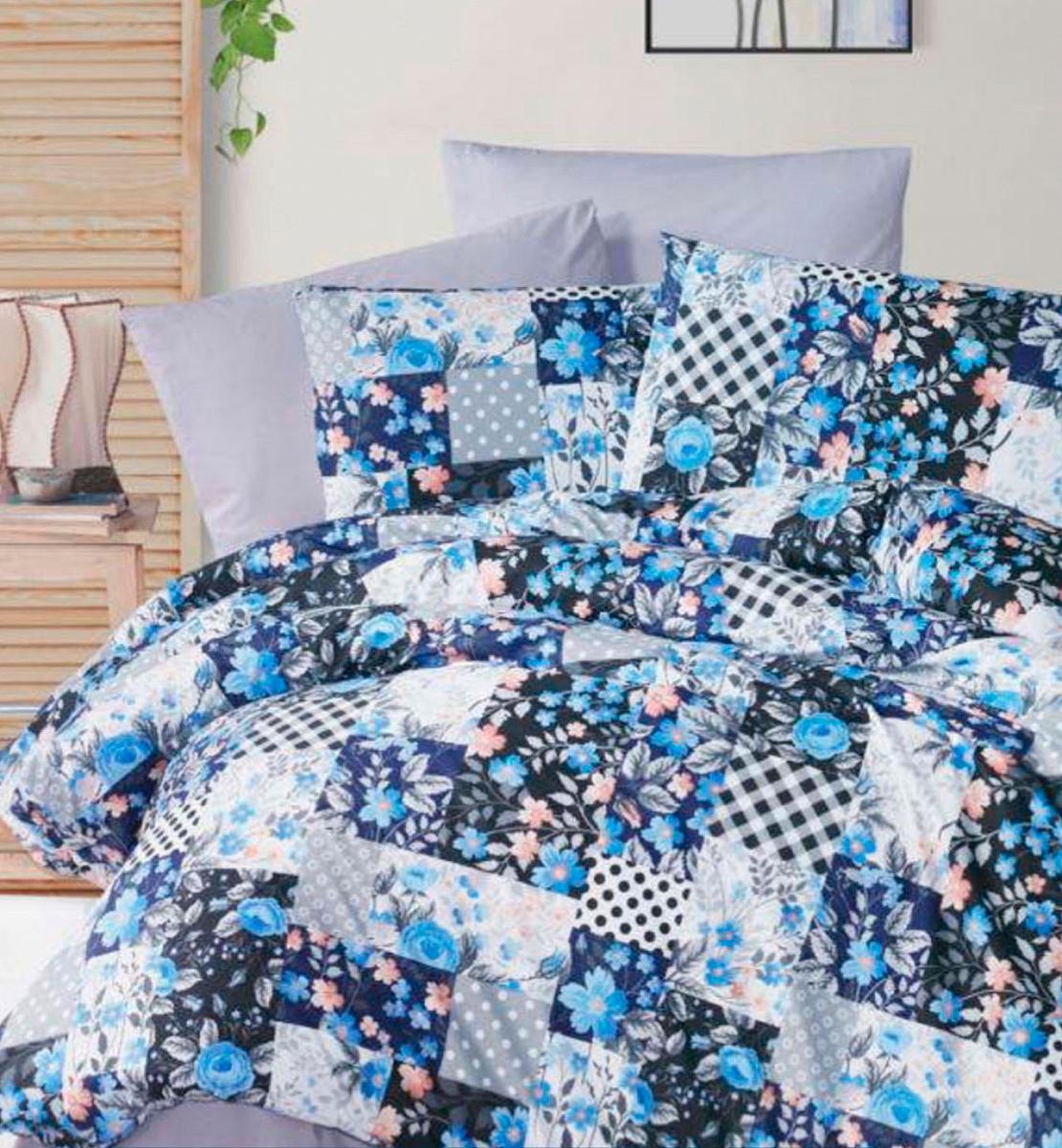 Ранфорс lux пэчворк сине-черно-белый с цветами