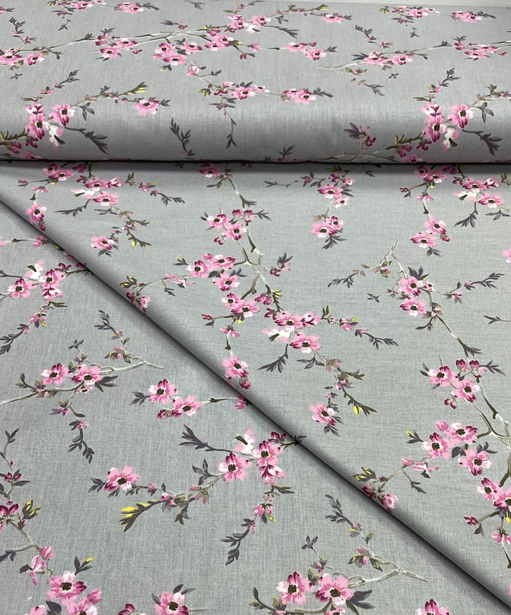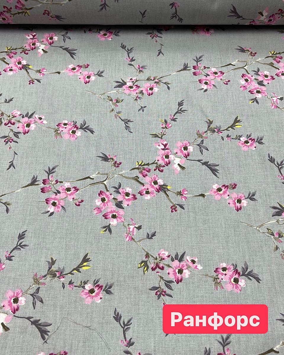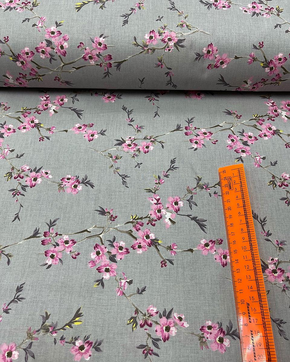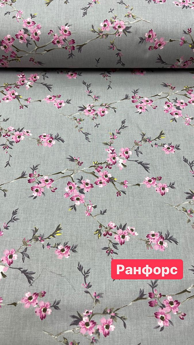 Ранфорс lux серый фон ветка с розовыми мелкими цветами