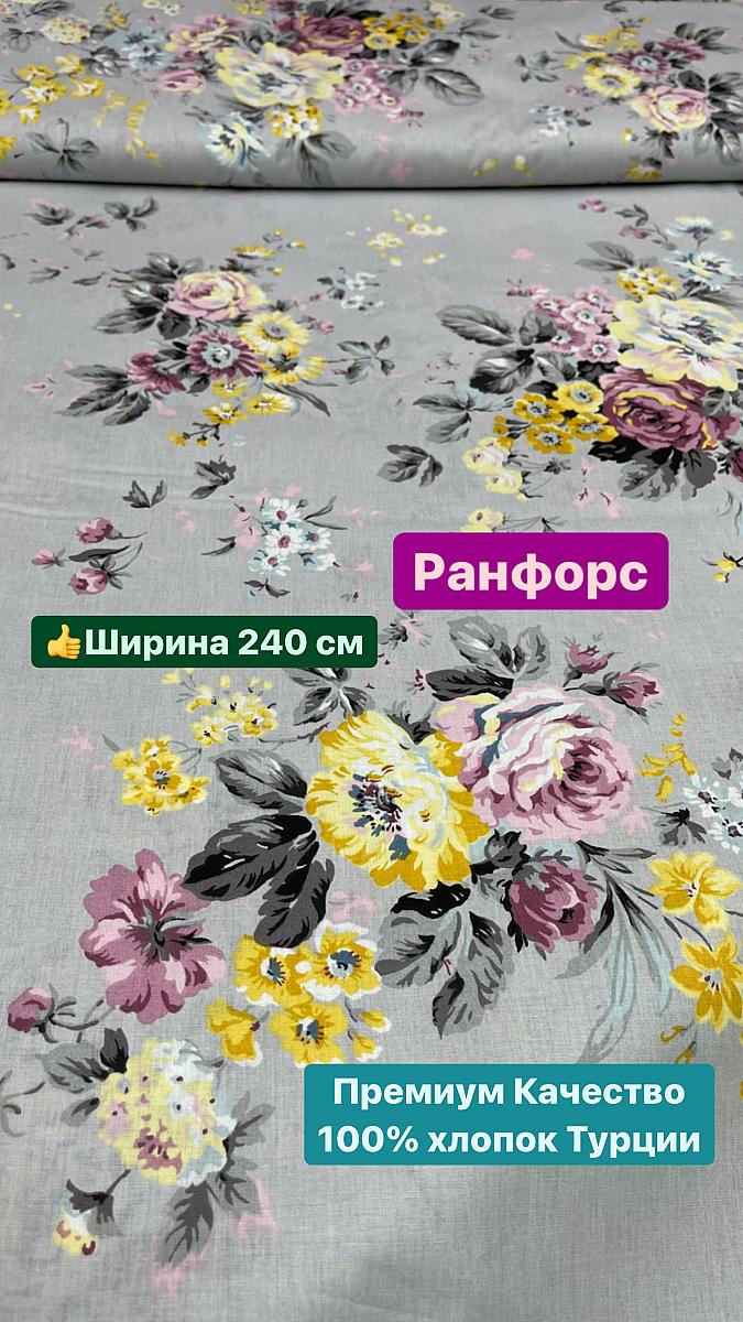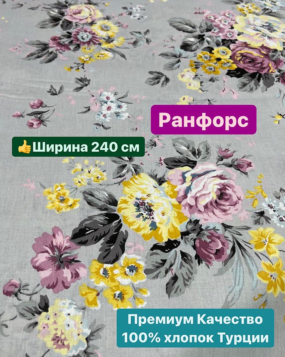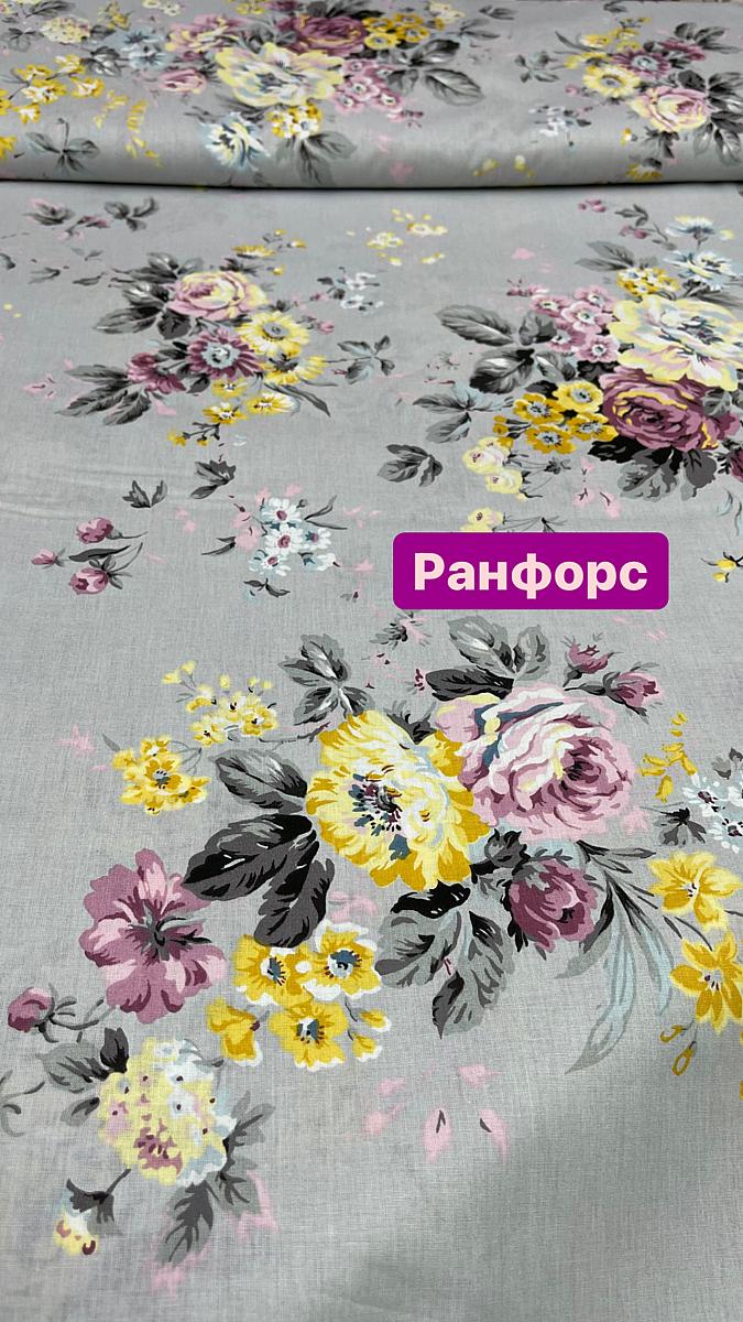 Ранфорс lux серый фон букетики с мелкими желтыми цветами