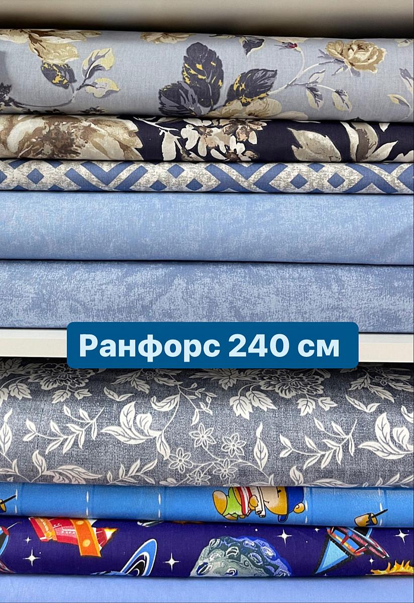 Ранфорс lux сине-голубой фон бежевые розы синие листья