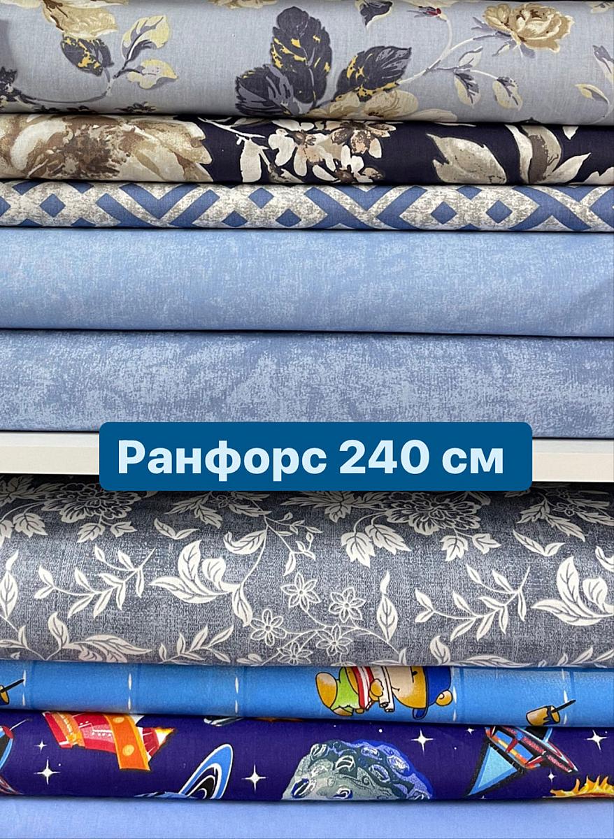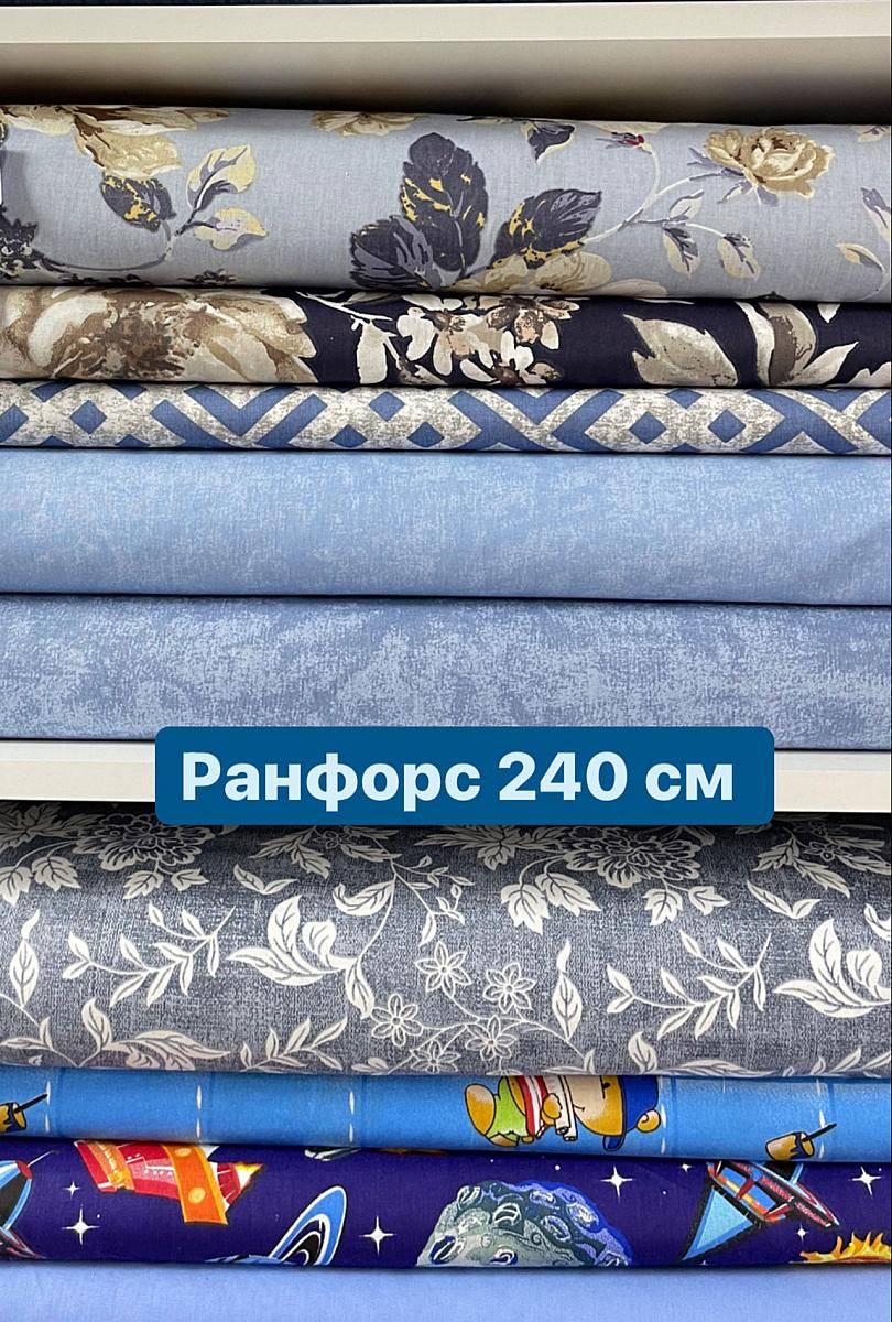 Ранфорс lux светло синий фон белый рисунок цветы,листья