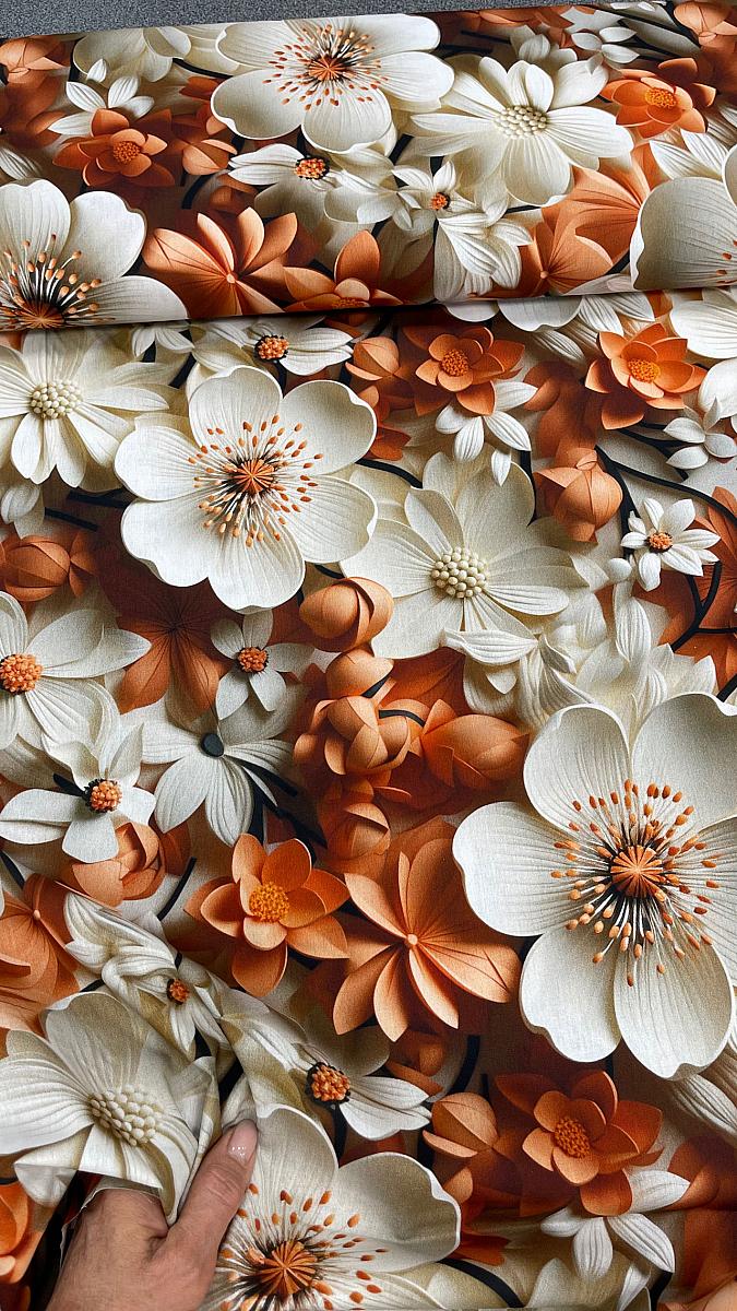 Ранфорс 5d мерсеризованный цветы терракотовые, молочные