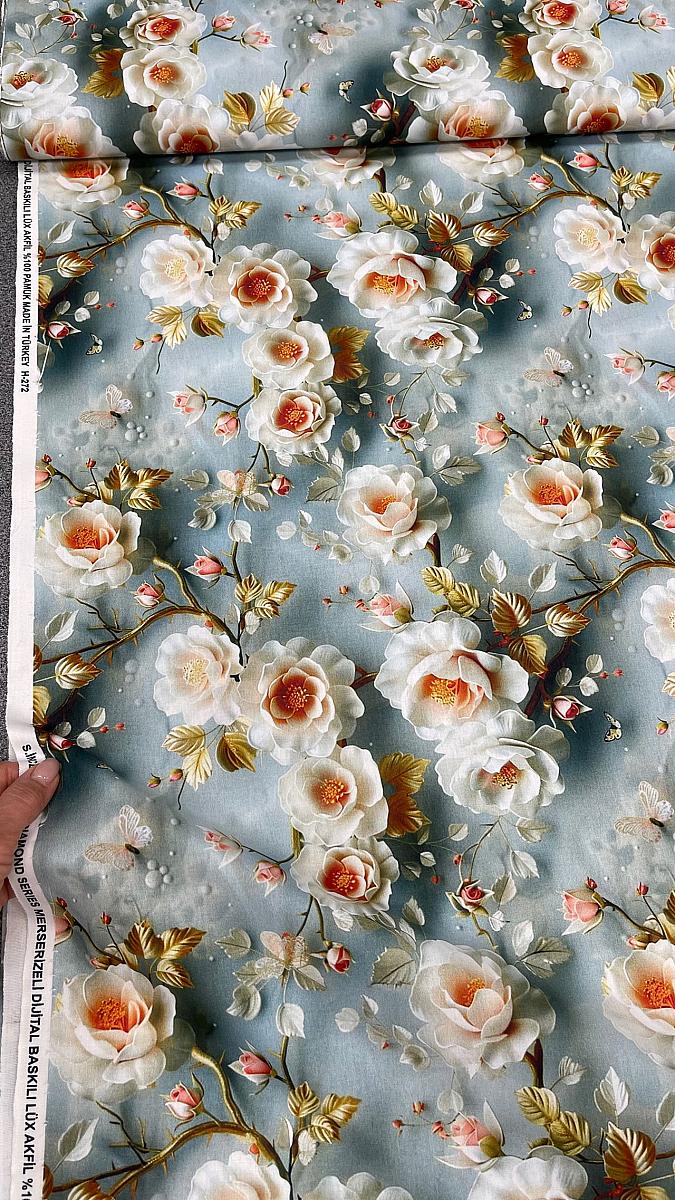 Ранфорс 5d мерсеризованный на мятном фоне белые розы